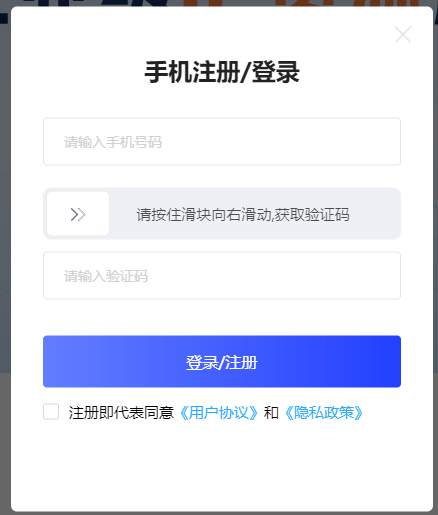 注册并登录用户管理后台:https://www.youzhiip.com/ ,输入手机号并获取验证码后