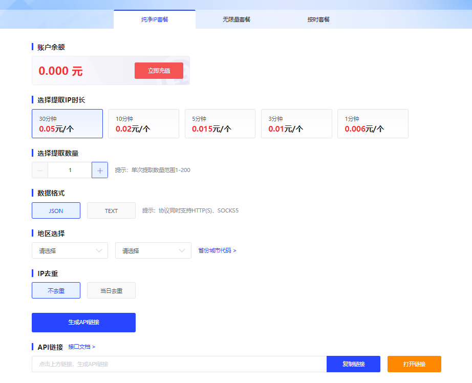 1、打开优质HTTP官网,登录账号,点击【获取API】栏目,进入提取IP页面。
